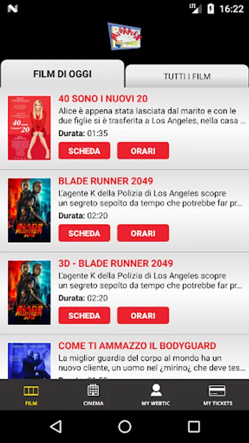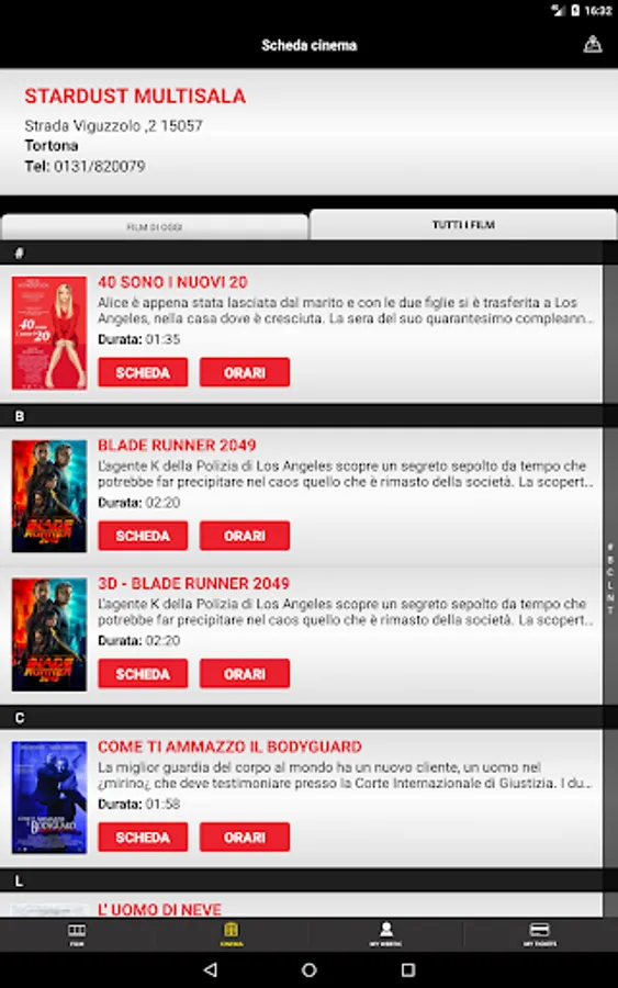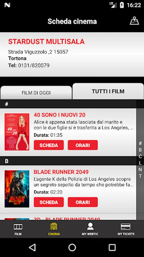 You can easily choose your rooms from the map of the places and decide whether to book them withdrawing them at the box office at least 30 minutes early.
