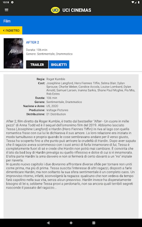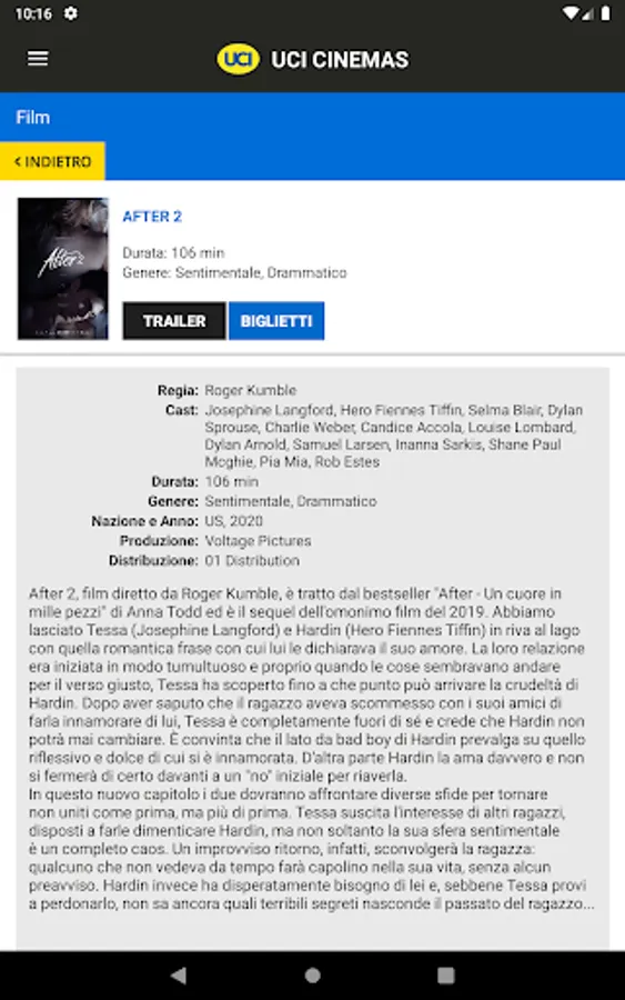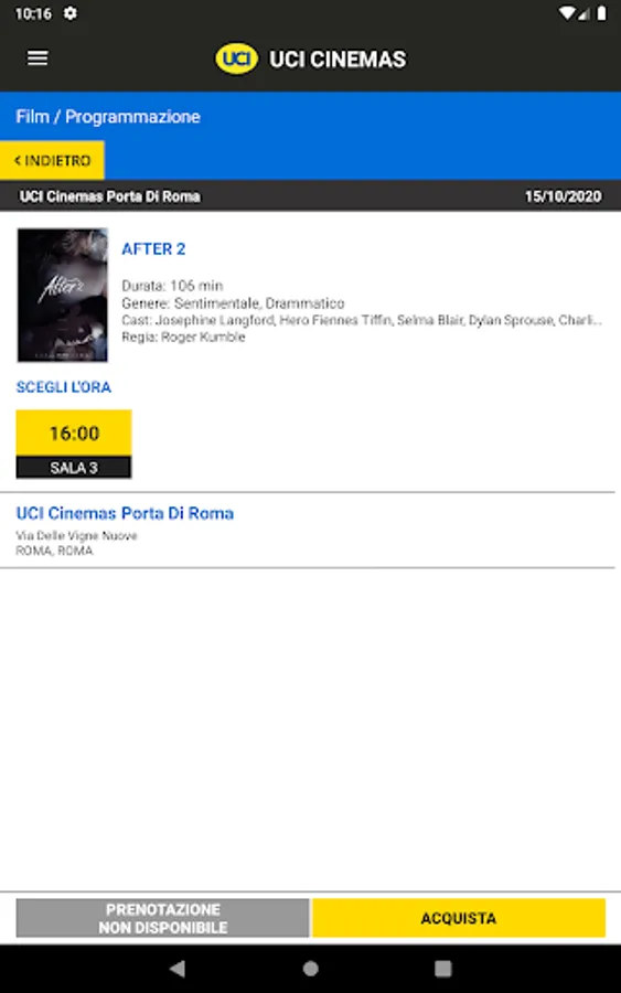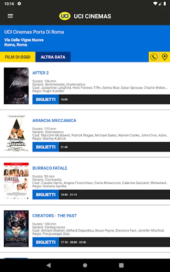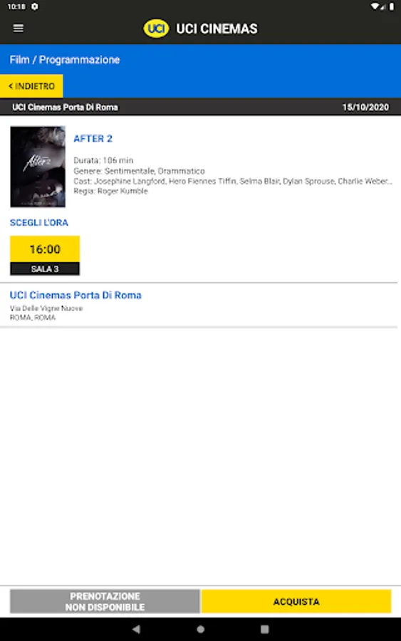 Application for the purchase and reservation of seats in the cinema circuit UCI CINEMAS ITALY.