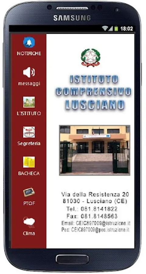 With this APP you can review the information and initiatives promoted by the Institute of Comprehensive Lusciano; receive notifications and messages from the Institute; call directly from APP and sending contact requests. In addition, teachers can make various consultations in its own reserved area including read and sign the school circular.