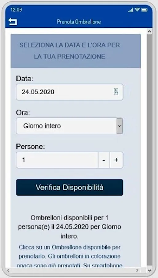 In particular, this APP is to be used to manage reservations for umbrellas in beaches and bathing structures in general.
