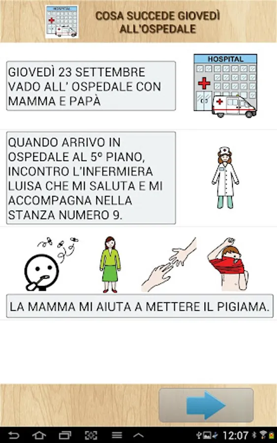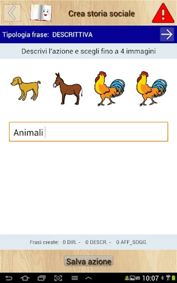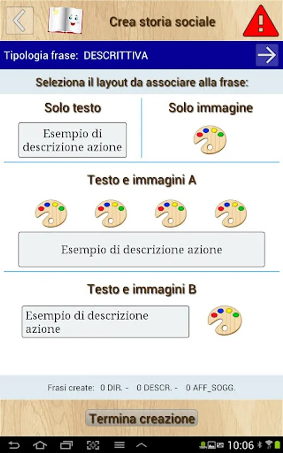2) The editor mode, allow parents, doctors or operators to create, edit and import (or export) contents. It is possible to use any picture on your device and is also possible to download (directly fom the app) the large ARASAAC pictograms library pre-classified in alphabetical order and by semantic categories.
