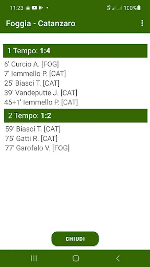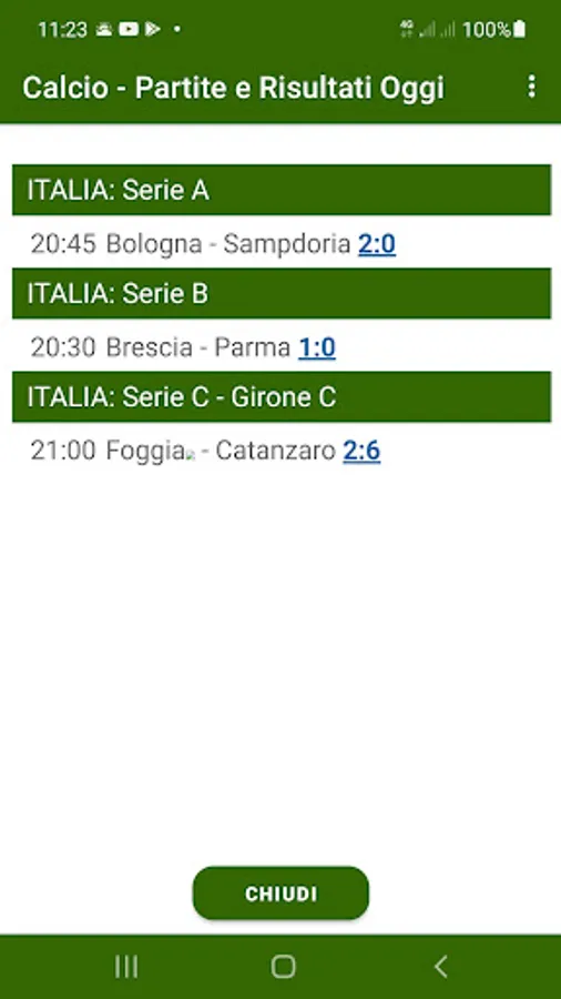 You can consult the results of football matches of Serie A - Serie B - Serie C - Serie D and of all European Cups in real time.
