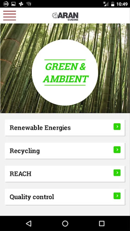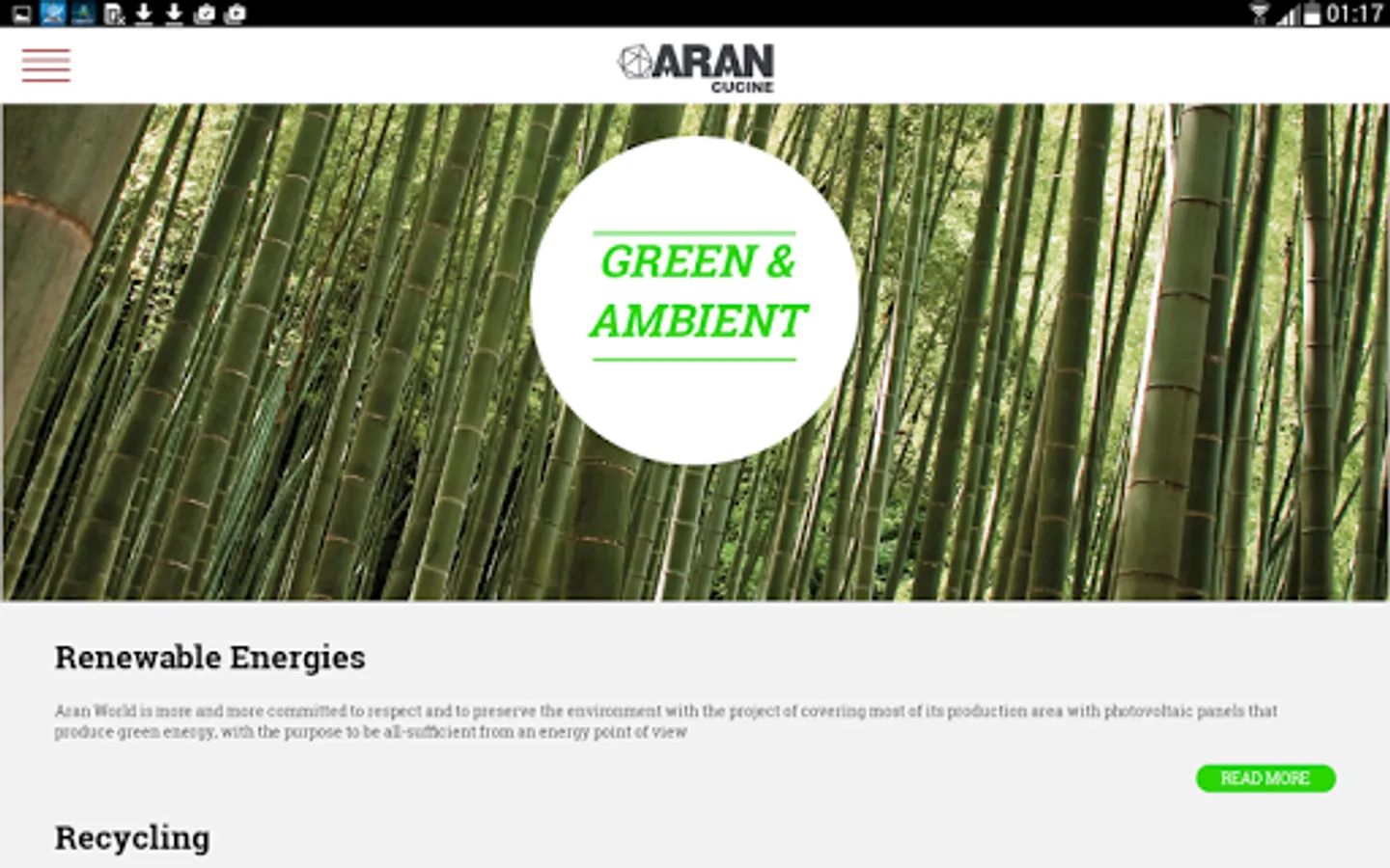 You will be able to discover Aran Cucine models through the on line catalogues and through the green section of the application you can learn and deepen how much commitment the company dedicates since always to recycling and renewable energies and its variuos certification .