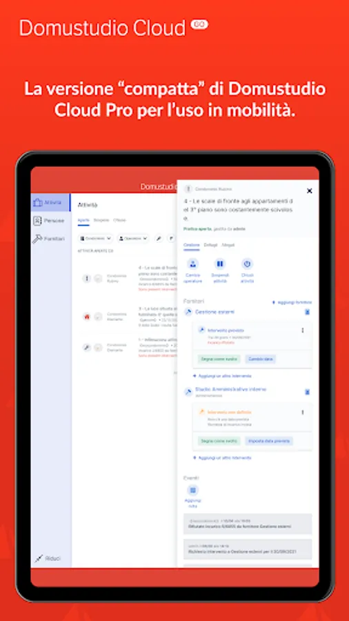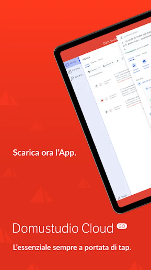 The Domustudio Cloud GO App is the "compact" version of Domustudio Cloud Pro, designed specifically for use on the move via smartphone or tablet.