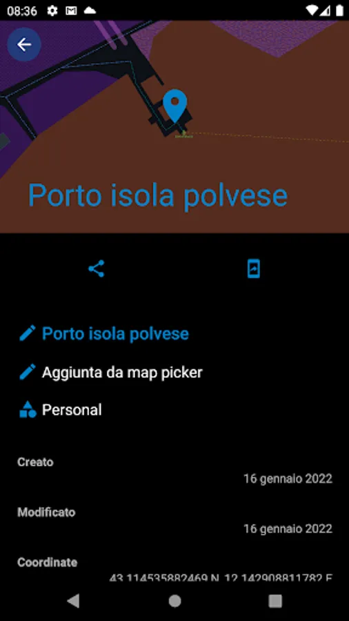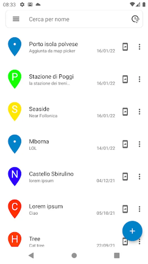 A new Geofavorites can be created on current location, by sharing a "geo:" uri from another app or manually picking from the map.