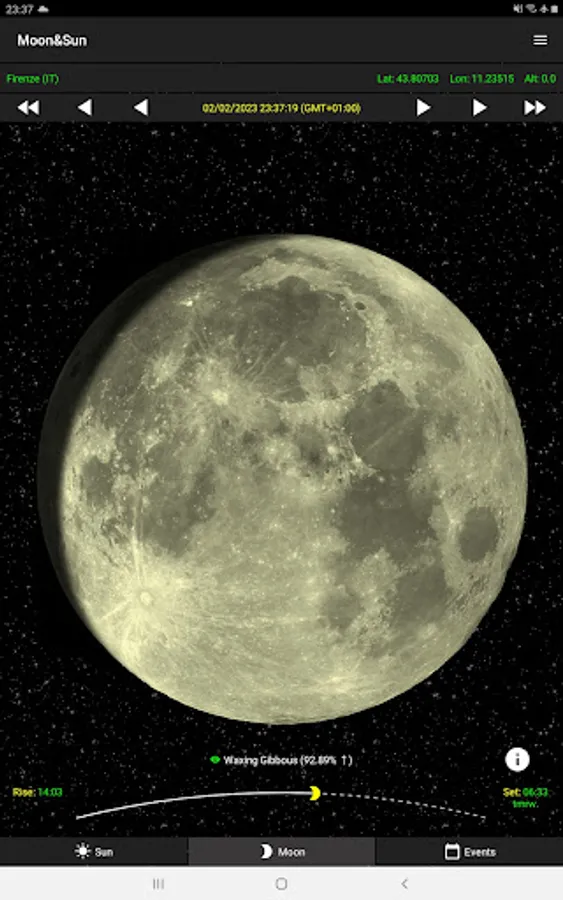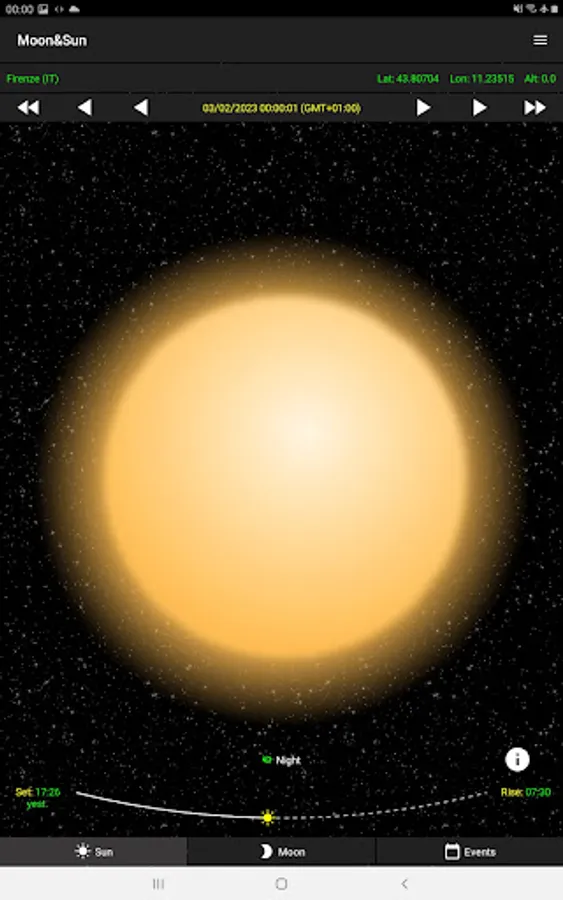 This application displays current Moon phase and other real-time information about the Moon and the Sun.