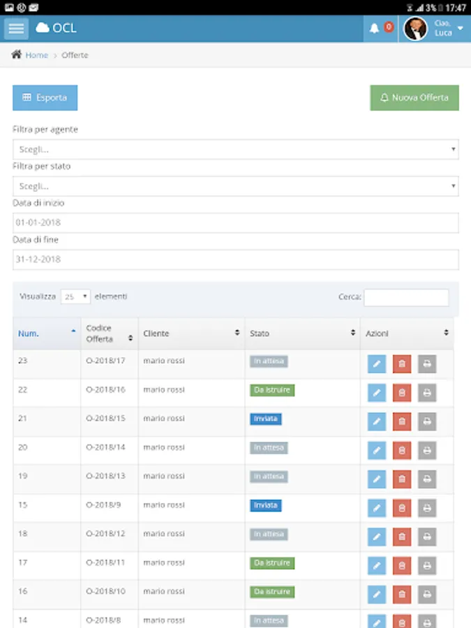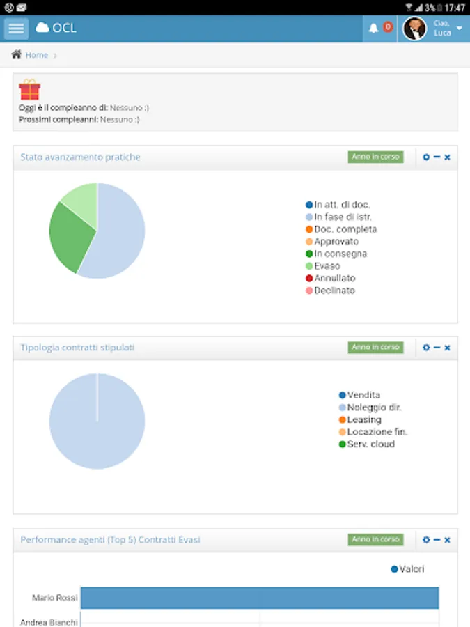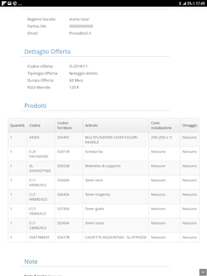 Just sheets of paper and stress for hours of work and lost time, make your sales network independent in the development of offers and contracts! Customize your product list, OCL allows you to better customize the categories of items, to enter the percentages of interest for the automatic development of a leasing or rental installment, to set the profit margin, to set the costs page in based on the type of multifunction or printer to be associated and automatically calculate the installment of the technical assistance All-in contract.