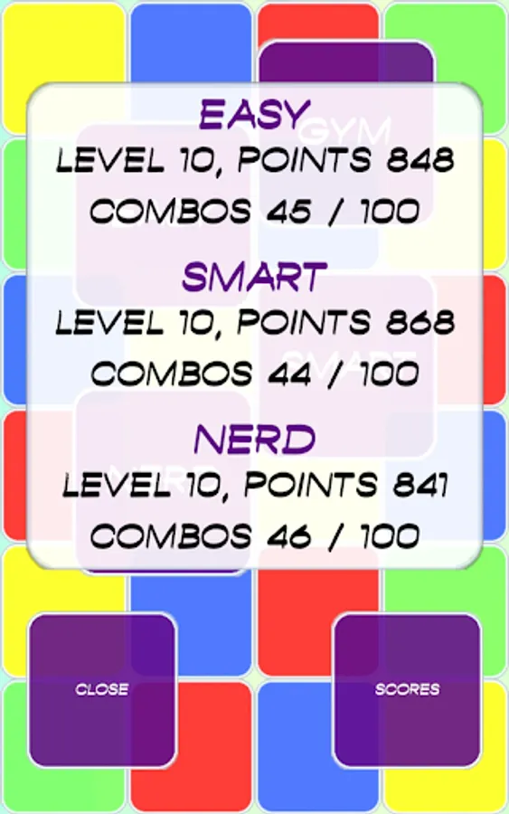 Try to find out the best strategy to win all the 20 levels and the 500 combos for each of the three games ("Easy", "Smart" & "Nerd").
