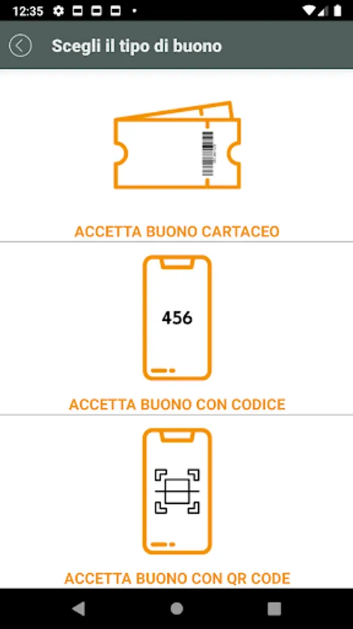 ACCEPT VOUCHERS via Code, QR Code or by framing the Barcode of the paper ones. The app responds in real time by verifying the validity of the voucher and authorizing the transaction. In MOVEMENTS OF THE DAY you can find all the transactions that have been successfully completed.