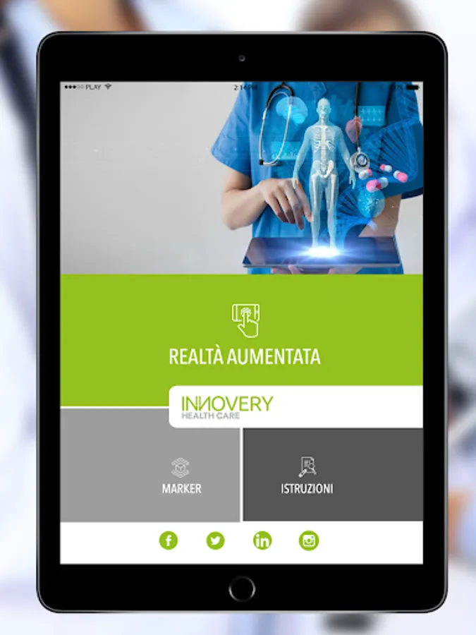 Innovery Healthcare is an Augmented Reality App that allows you to view, with the latest technology, through the camera of your device, an interactive experience, which overlaps real time, virtual elements (3D models) and real elements of the environment that surrounds us.