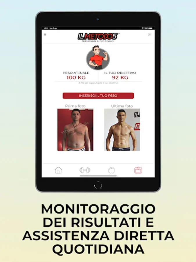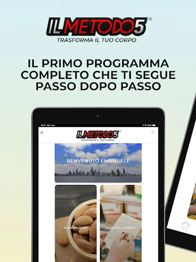 Welcome to the new IL METODO5® app created to help you achieve your health and wellness goals! The new app has been designed to provide you with everything you need to get the most out of your physical activity and diet, helping you achieve concrete results.
