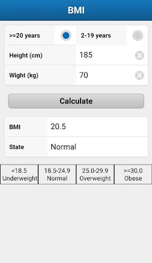Do you want to calculate adult's body mass index? Or child's one and his growth percentile?