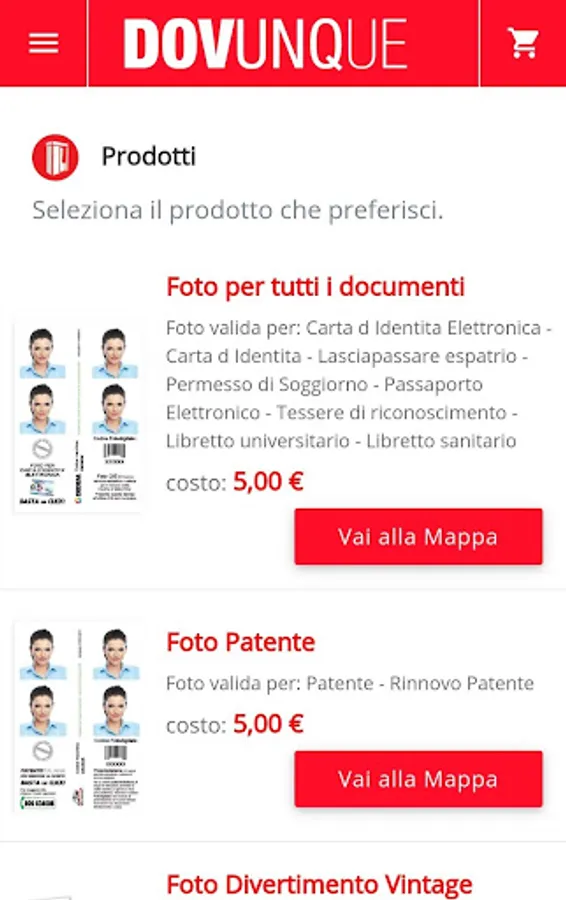 If you need to take a photo of yourself for your identity documents, thanks to "Dovunque", in a few seconds you will see on the map the 3 Dedem cabins closest to the place where you are, with the directions of the streets and the navigation.
