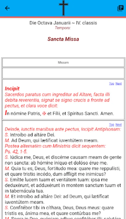 Useful app to follow the Tridentine Mass (Vetus Ordo Missae), both weekdays and holidays, with the availability of the translation from Latin into different languages.