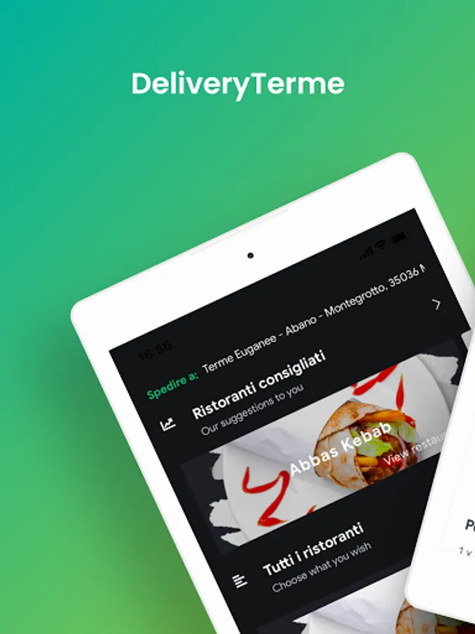 Download DeliveryTerme and order your favorite dishes with just a few taps! Service available in Padua, Montegrotto Terme, Abano Terme and other thermal areas! Don't waste time, download our app and order your favorite dishes and more!