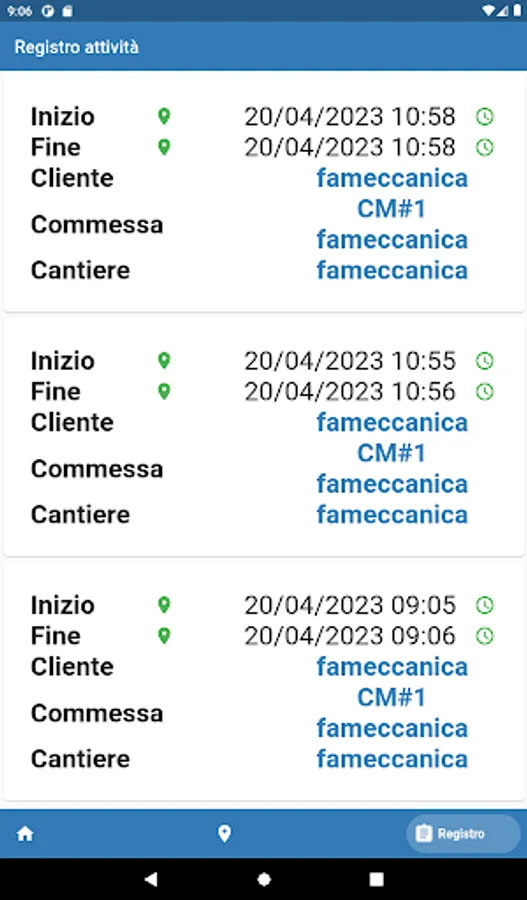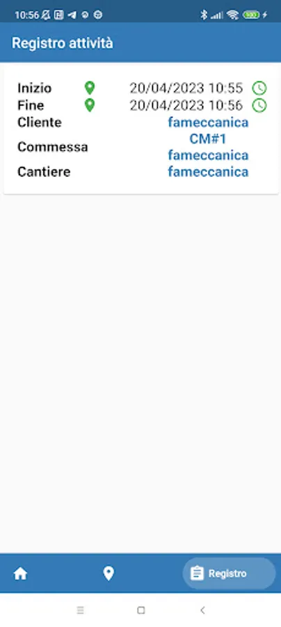 Each enabled user, after the initial authentication phase, is able to record dates and times on the Internet (if there is a network), or local to the device (if it is absent), together with the position of the successful stamping, every time he starts and ends one of the activities carried out among those codified and proposed.