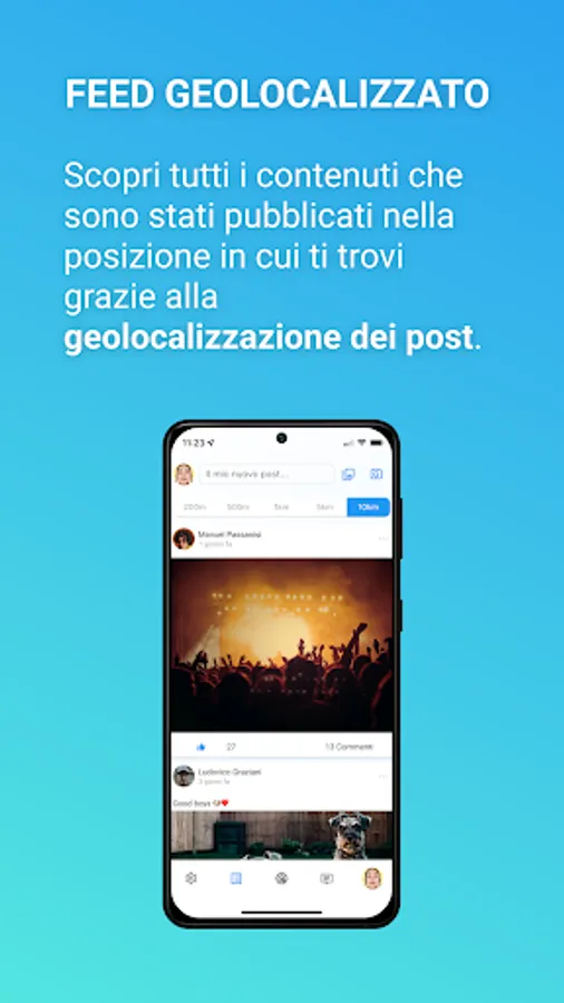 Another fundamental function of Radius is that of the geolocated feed. As in any other social network, users can publish their own content, which however will only be visible in that specific position. Find out what content is popular in the area you are in.