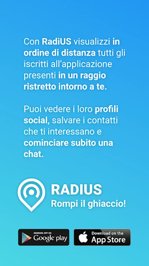 Search, discover, chat! Using Radius is really simple and intuitive, it will allow you to make new acquaintances and get in touch with those you are interested in.