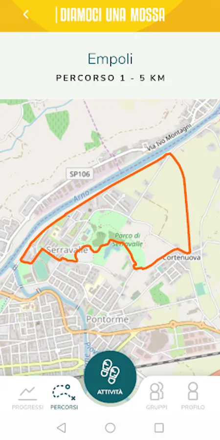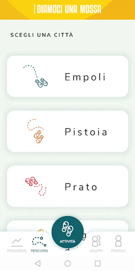 The app "Diamoci un mossa" is part of the project that aims to offer an opportunity to all citizens to practice physical exercise, walking in easily identifiable pedestrian paths located in the Empolese area -valdarno, south Florentine area east, Prato area, Pistoia area.
