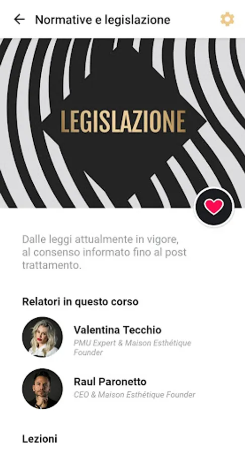 Each course is divided into lessons to allow you to follow more easily and find the topic you need easily. In the favorites section you can add all the courses and lessons you watch most frequently.