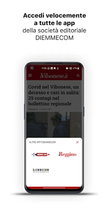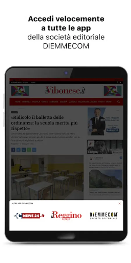 Tap on "other apps" and easily access all the apps of the DIEMMECOM Publishing Company to have at your fingertips all the information and insight, impartial, on the facts of Calabria.
