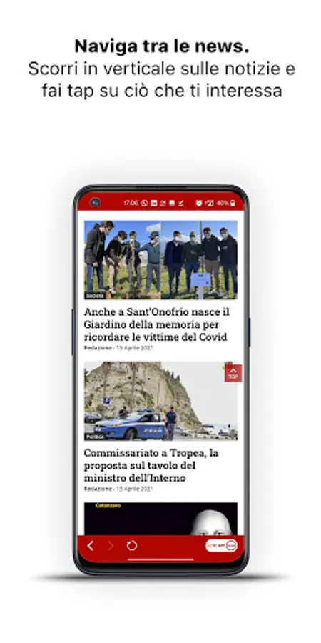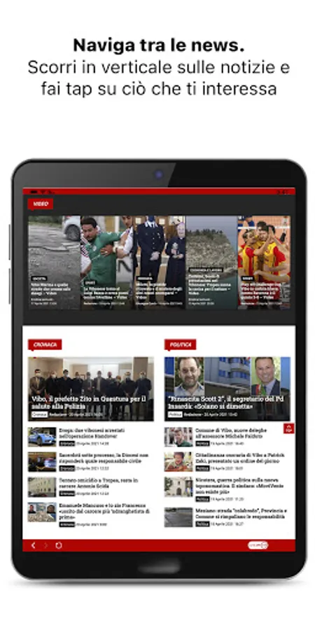 With our app, you receive timely notifications on the topics that interest you: breaking news and insights on politics, news, current affairs, sport, culture and entertainment in the Vibonese province.