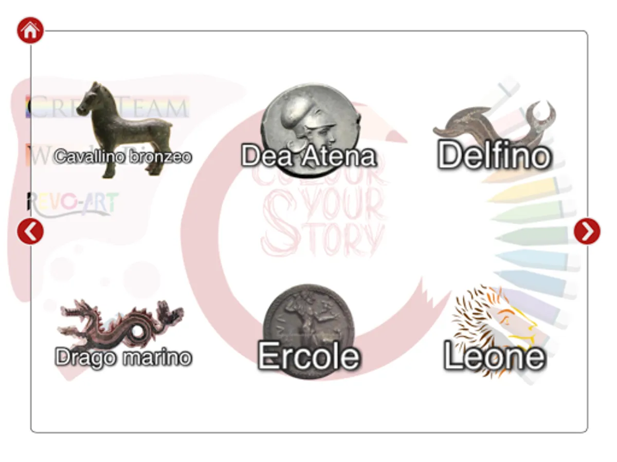 An application dedicated to children who love color, having the opportunity to learn while having fun the finds of Magna Grecia.