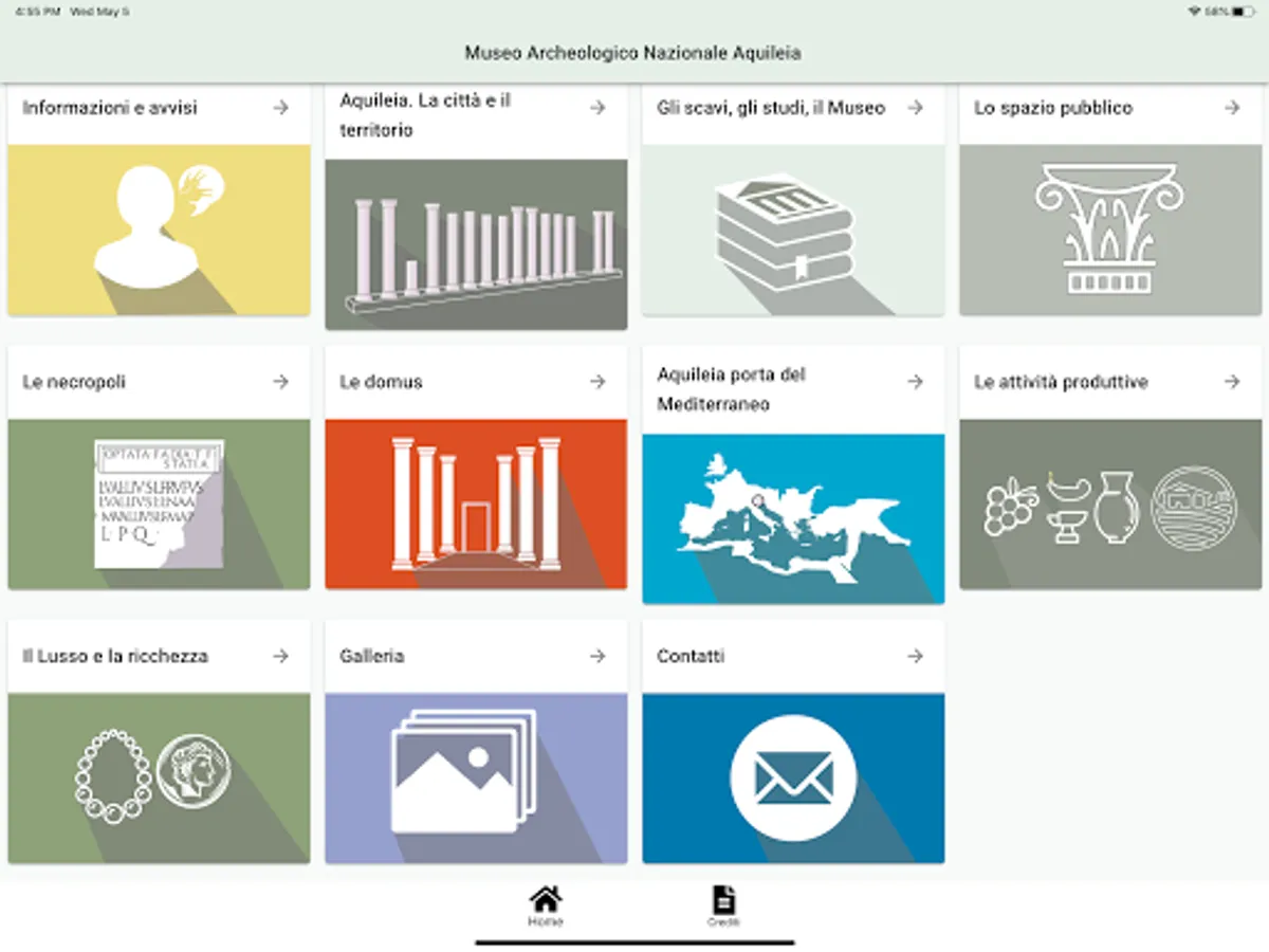 The VideoguidaLIS, developed for the National Archaeological Museum of Aquileia, will allow you to discover and get to know in depth the finds kept inside the museum. The VideoguidaLIS presents itself as a journey through the history of one of the most important colony of the Roman Empire.