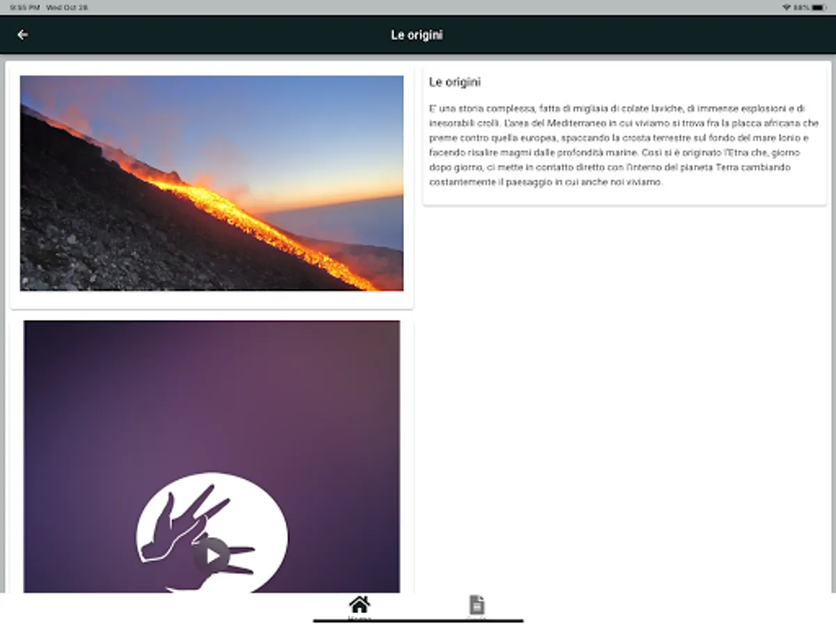 VideoguidaLIS, Parco Etna Guida LIS, developed for the Etna Regional Park Authority, will let you discover the history of the highest volcano in Europe, and one of the largest in the world. The VideoguidaLIS looks like a journey through time that began 570,000 years ago.