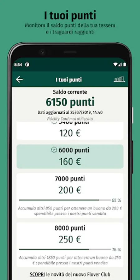 By MyFlover personal account access can have your loyalty card with you! Do not forget that Flover Fidelity Card, in addition to collecting points, entitles you to exclusive promotions just for the Fidelity Club members! Show it to your right from your smartphone! *