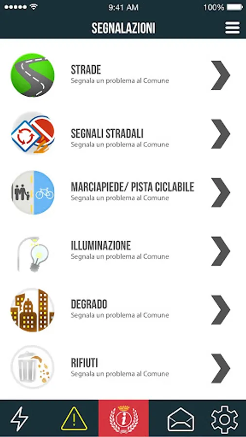 With a view to increasing citizen involvement in the Municipality's activities, the online reporting tool is essential to give anyone the opportunity to easily get in touch with the Administration: the citizen, through a communication and reporting system integrated into the APP, can easily send reports or queries to municipal offices.