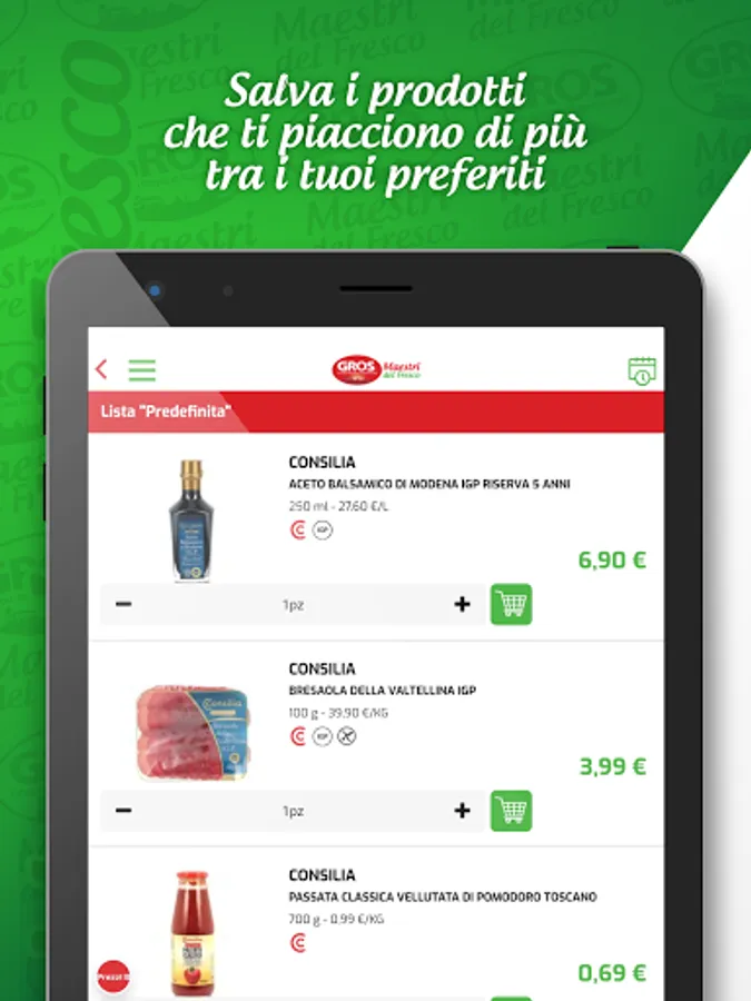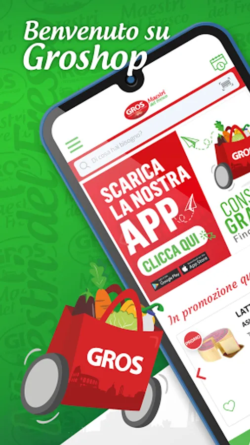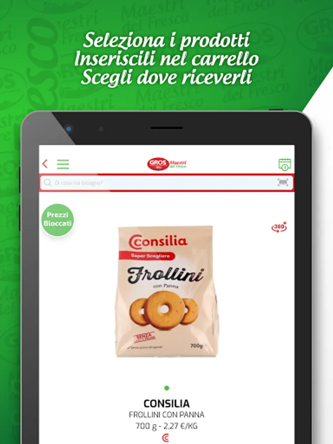 Gros Spesa Online is a Gros Maestri del Fresco service that allows customers to shop as if they were at the supermarket, order it and receive it where they prefer.