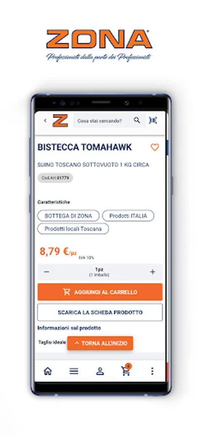 ZONA is a B2B platform (available for Smartphones and Tablets) that allows companies to buy their products online in just a few clicks.