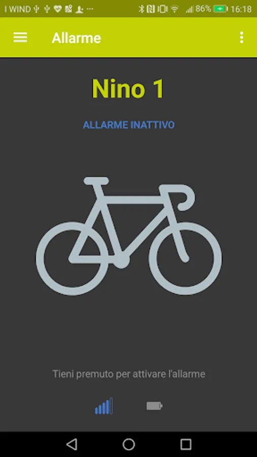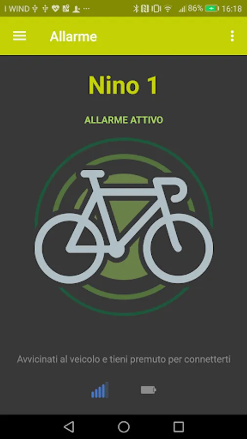 After parking and you have secured your BIKE with a common lock, just open the APP will automatically connect to your NINO. Clicking on the bike you can enable or disable protection. In case of attempted theft or tampering, NINO will sound and transmit a wireless Bluetooth signal to your smartphone ringing and vibrating, will warn of attempted theft. If enabled BRIDGE function, NINO will also send an SMS to the number configured in the settings. The user can at any time to silence the alarm and, approaching the vehicle, turn off the protection. If the sensors detect only NINO of a vibration or a small bump, the alarm on the smartphone is automatically muted after a few seconds (if enabled the auto-power off function).