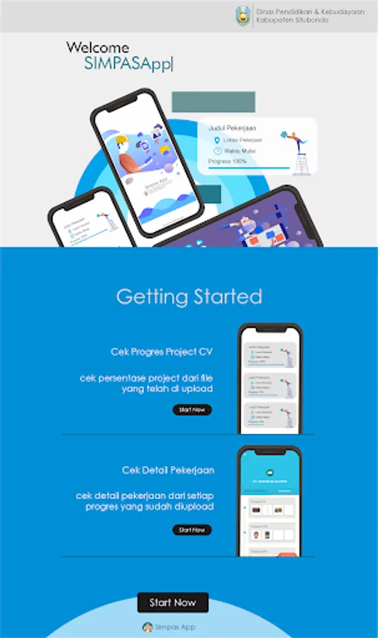 The purpose of making Simpas App is to facilitate the recording of the progress of each submission of work carried out by the CV related to the submission of facilities and infrastructure submitted by the Office of Education and Culture of Situbondo Regency.
