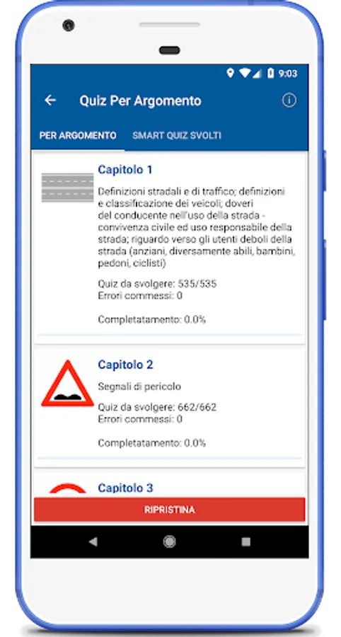 • Smart quiz, tackles all the questions issued by the ministry without stumbling upon the same question twice.