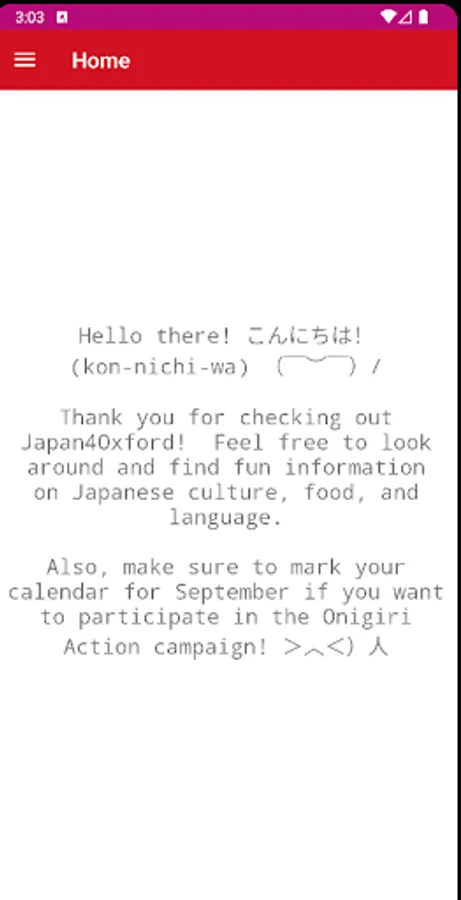 Japan4Oxford is an app made by Gavin Cowan for a High School capstone. Japan4Oxford teaches about basic Japanese, Japan's culture and food, as well as Table For Two's Onigiri Action campaign.