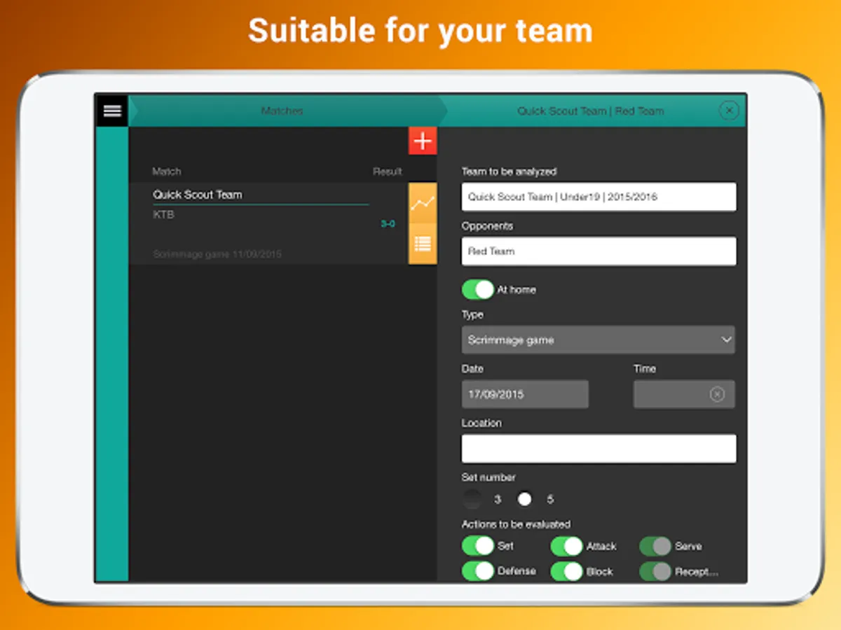 Quick Scout Volley is suitable for all types of team, both professionals and amateur. You can manage multiple teams in different types of competitions.