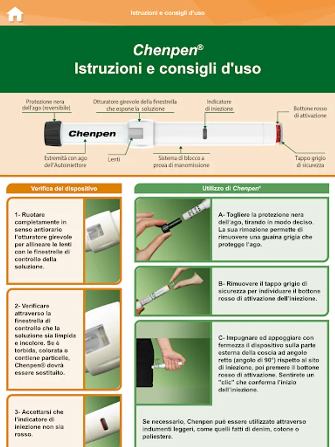 the Application is dedicated to patients and those who help and assist them to understand how to use the device with demonstration videos, with a description of the various steps of using the device and with a simulation that helps to remember these steps. The App also allows you to memorize the expiration date and to program a warning that will remind you when to replace the auto-injector.