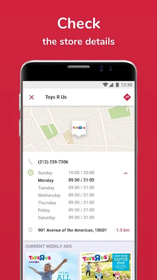✔ MAP: use the built-in map to find the location of any store including address and phone number, then choose your preferred navigation program to get directions with one click