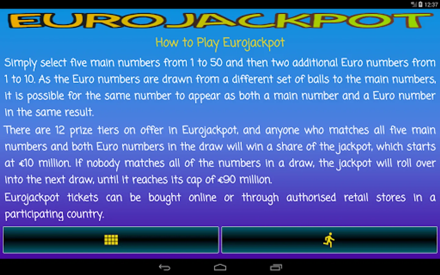 EuroJackpot is a generator of numerical combinations. The application allows you to generate a game based on certain options, or by entering a numerical sequence manually. In both cases you will see statistics that will help you in your choice, as you will be able to know the frequency of your numbers by comparing the historical archive.