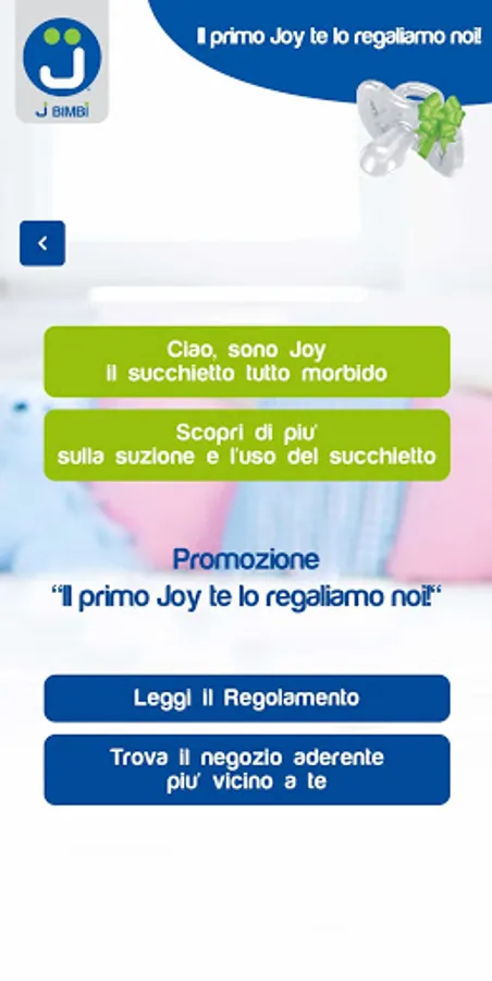 With the promotion "We'll give you the first Joy!" you can also request the Joy GIFT 0-6m soother in Children's Shops (Pharmacies, Parapharmacies, Healthcare, Early Childhood Shops, etc.) participating in the initiative, simply by presenting your child's tax code or health card.