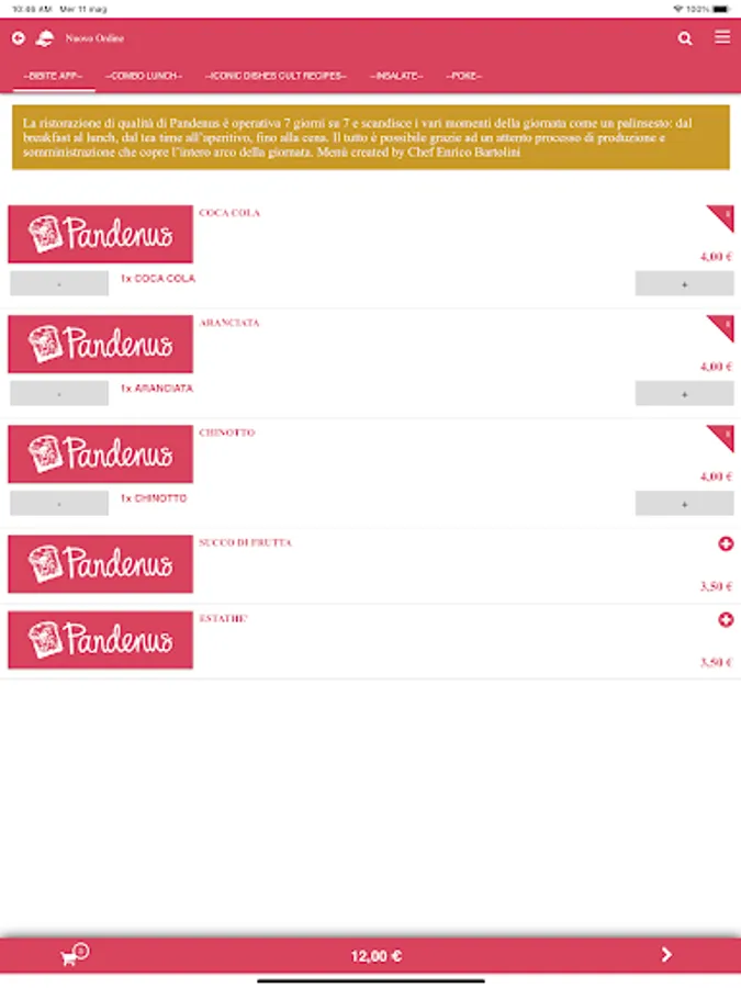 The quality catering of Pandenus operates 7 days a week and marks the various moments of the day like a schedule: from breakfast to lunch, from tea time to aperitif, up to dinner. All this is possible thanks to a careful production and administration process that covers the whole day. The administration on the premises begins in the morning at 07:00 and ends at 01:00 at night.