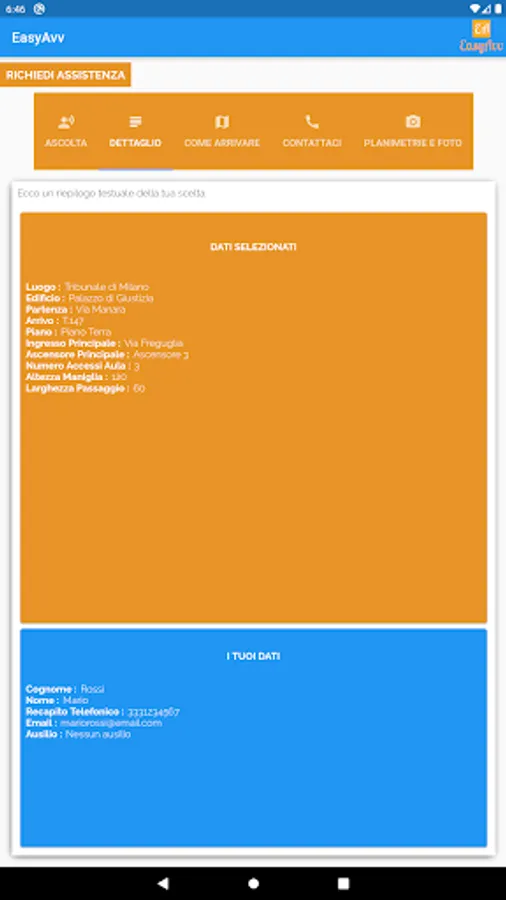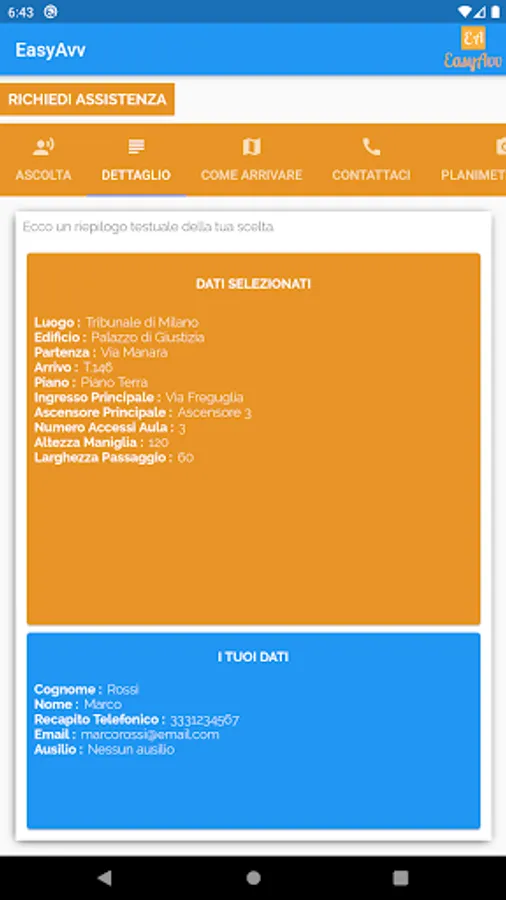 the journey independently or to assist in the activities to be carried out. Volunteers are lawyers or practitioners, included in a list divided by areas of activity. The user can contact the volunteer directly via whatsapp, indicating the type of activity required (e.g. simple companion, assistance with stationery)