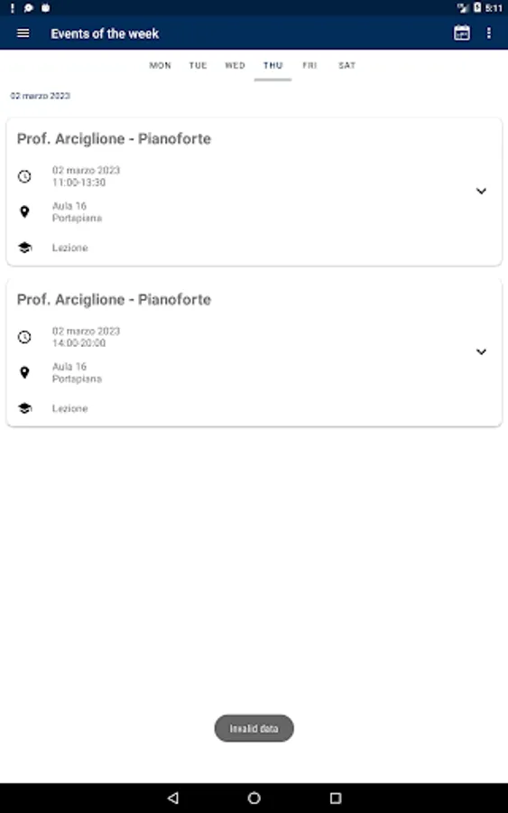 - Visualization of the lesson timetables both for the week and for the entire teaching cycle.