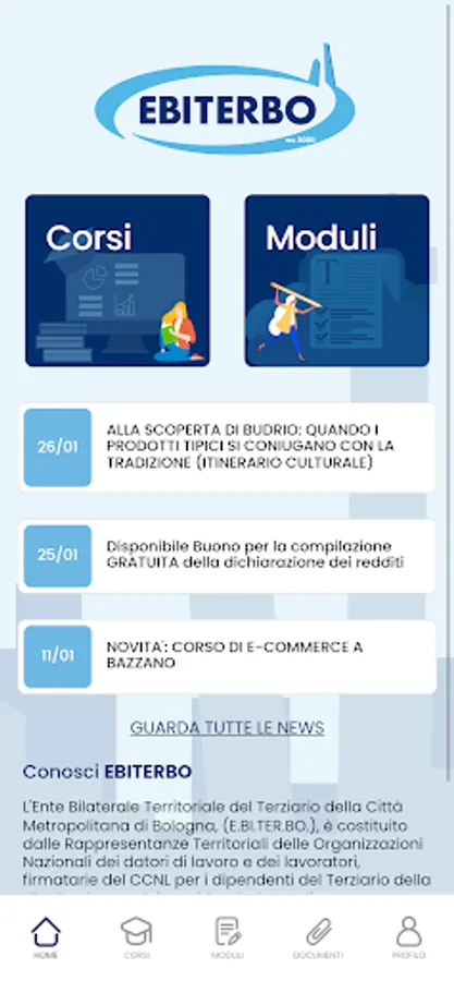 With the EBITERBO APP you can easily use all the services that the Bilateral Body has made available to the working user, including: