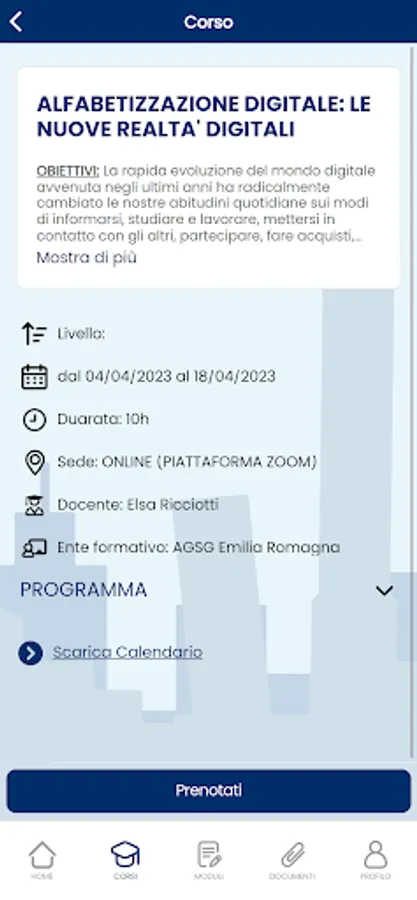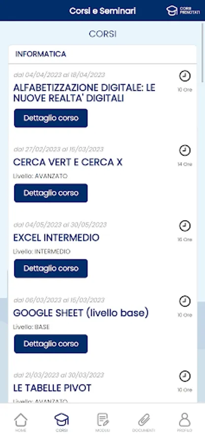 - booking of courses