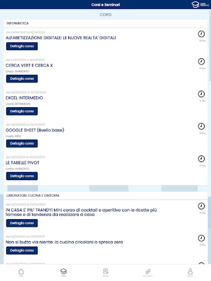 - alerts on booked courses