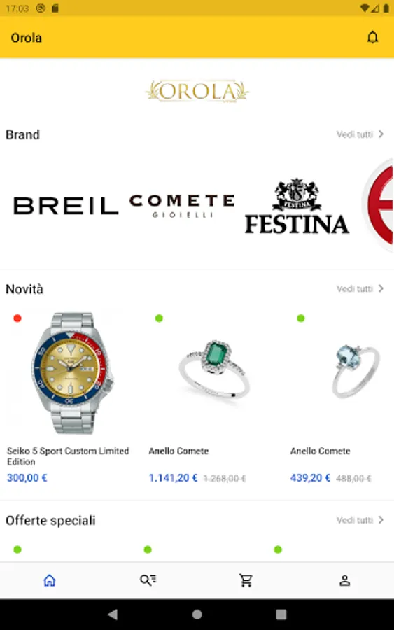 We are in the palm of your hand! Orola is the app that allows you to enter our store wherever you are, just have your phone or tablet with you and you will always be updated on news and the status of your purchases. You will have our complete catalog of Jewels and Watches available and you will be able to view the exclusive promotions of our brands!
