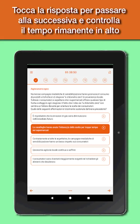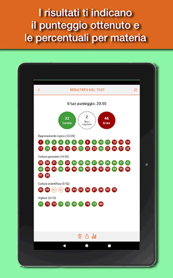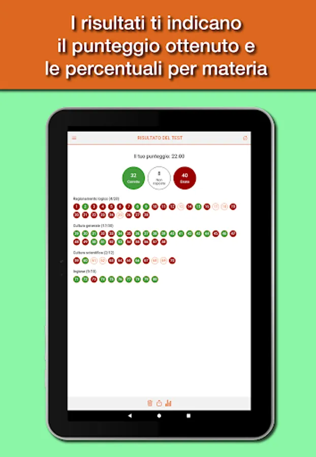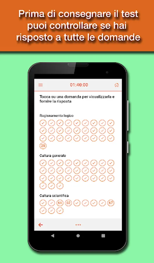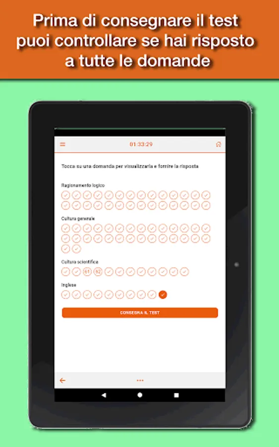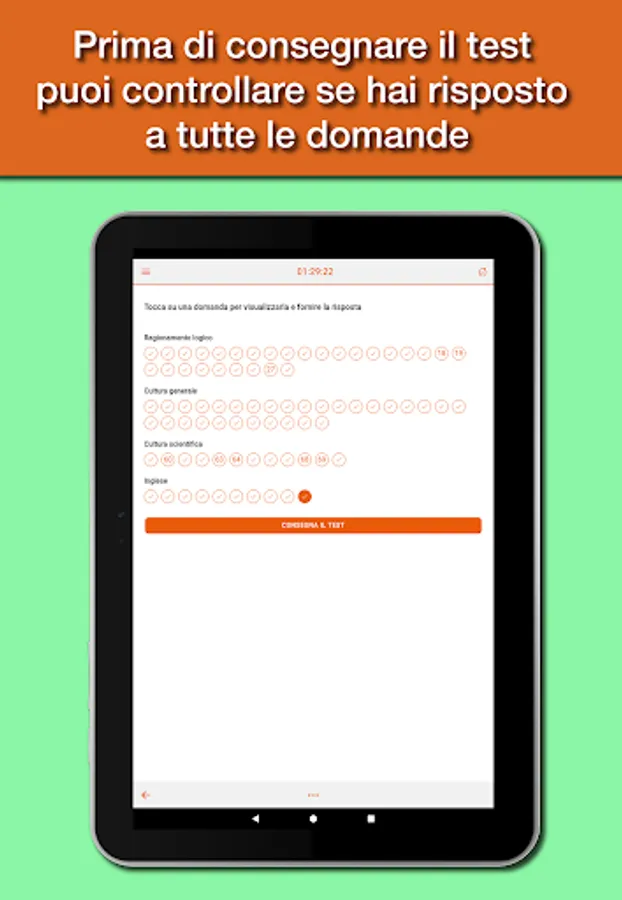 This app is built on a database of 1000 questions with their corresponding annotated solutions, and enables you to generate an unlimited number of different tests and reach a better preparation. After downloading the app, you can simulate a full test of 80 questions, similar to the actual official test, or you can choose to check your preparation in a quicker way by completing short tests with 20 questions, in order to optimize your time. In both cases, you can pause the test and resume it later, you can submit it and check the solutions, or you can abandon it and start a new test.